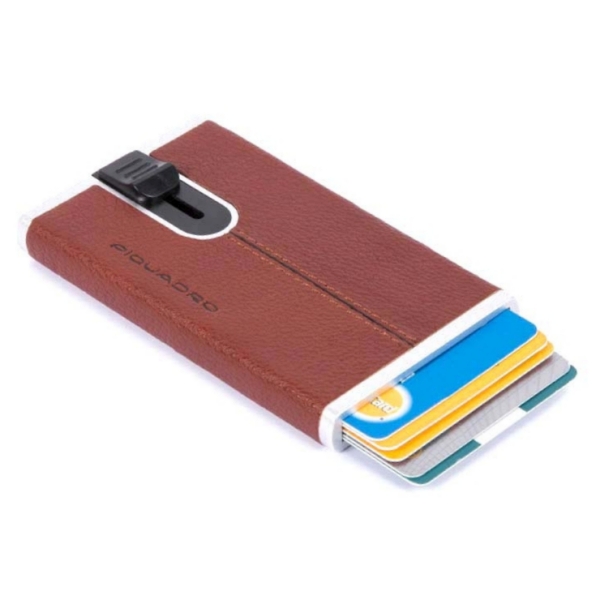 Чехол для кредитных карт Piquadro Black Square с инновационным выдвижным механизмом и защитой RFID от считывания инфо с карты. Светло-коричневый цвет и лаконичный дизайн. Материал - прочный металл и телячья кожа, стойкая к износу. Имеет одно крупное отделение для кредитных карт.