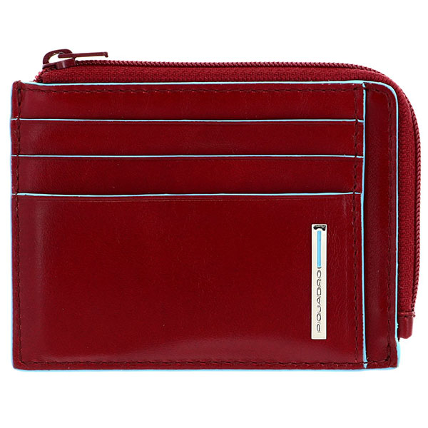 Кожаный чехол красного цвета для банковских карт с радиочастотной защитой RFID и карманом для мелочи из коллекции Piquadro Blue Square.