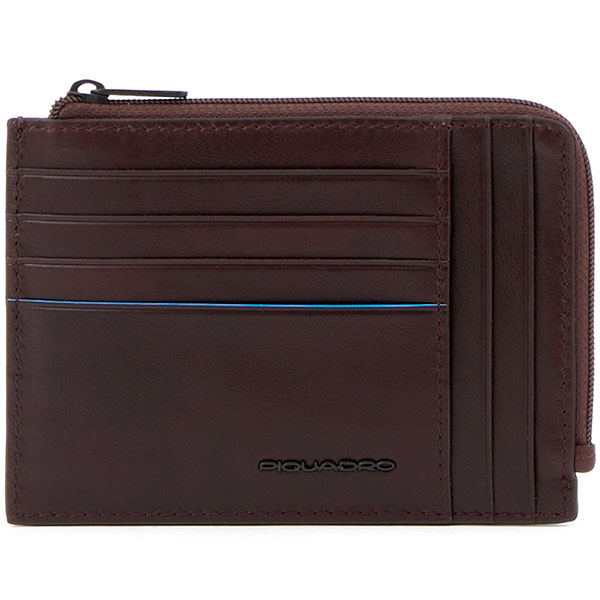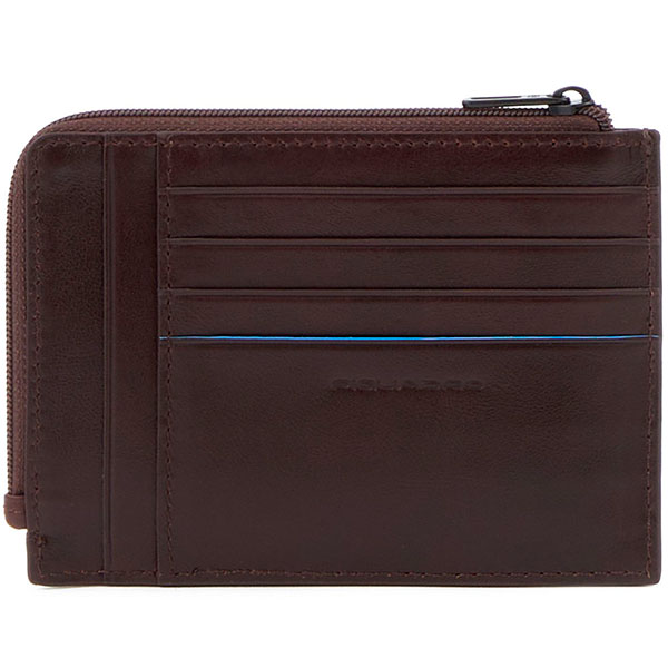Чехол для кредитных карт с отделением для монет и отсеком для документов от компании Piquadro, коллекция Blue Square Revamp. Натуральная телячья кожа коричневого цвета. Одно отделение с голубым кантом. Отделение для монет на молнии. Фирменная упаковка.
