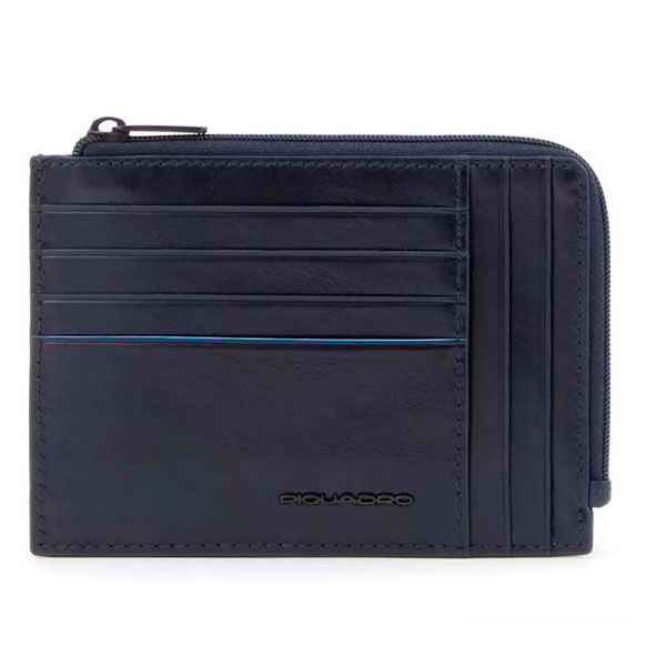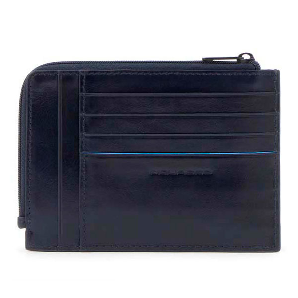 Чехол для кредитных карт с отделением для монет и отсеком для документов от компании Piquadro, коллекция Blue Square Revamp. Натуральная телячья кожа синего цвета. Одно отделение с фирменным голубым кантом. Отделение для монет на молнии. Фирменная упаковка.