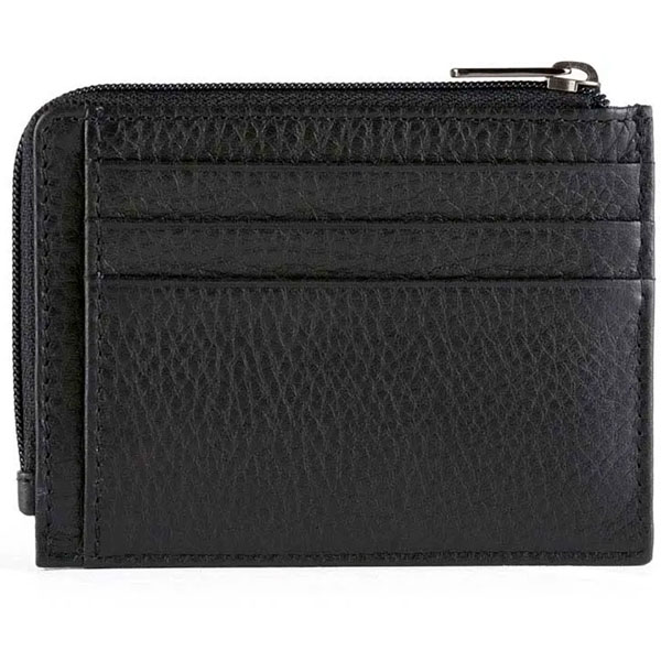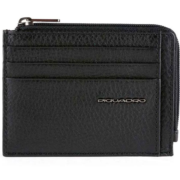 Кожаный чехол черного цвета для банковских карт с радиочастотной защитой RFID и карманом для мелочи из коллекции Piquadro Modus Special.