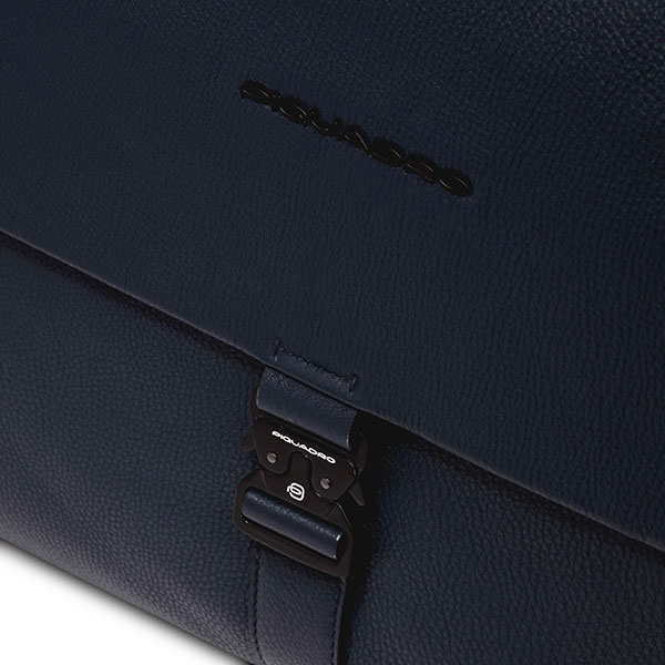 Кожаная сумка синего цвета с плечевым ремнем из коллекции Piquadro Blue Square. Имеет одно отделение..