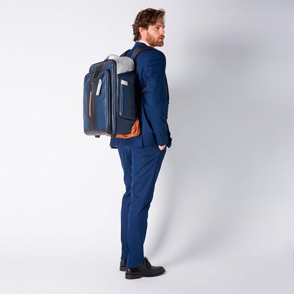 Кожаная дорожная сумка-рюкзак на колесиках из коллекции Piquadro URBAN. Сумка-рюкзак имеет одно большое отделение с натяжными ремнями, кармашком для Power Bank и внутренним карманом, а также большой передний карман с отсеком для 15,6 дюймового ноутбука и планшета, местом для телефона и письменных принадлежностей. На верхней части сумки расположен кодовый замок, сбоку выведены разъемы USB для зарядки Ваших гаджетов и спрятан "антиворовской" шнур. В задней части, в кармане на молнии находятся лямки, позволяющие использовать сумку в качестве рюкзака. Компактный размер позволяет брать данную сумку на борт самолета в качестве ручной клади. Идеальный вариант для небольших командировок и путешествий.