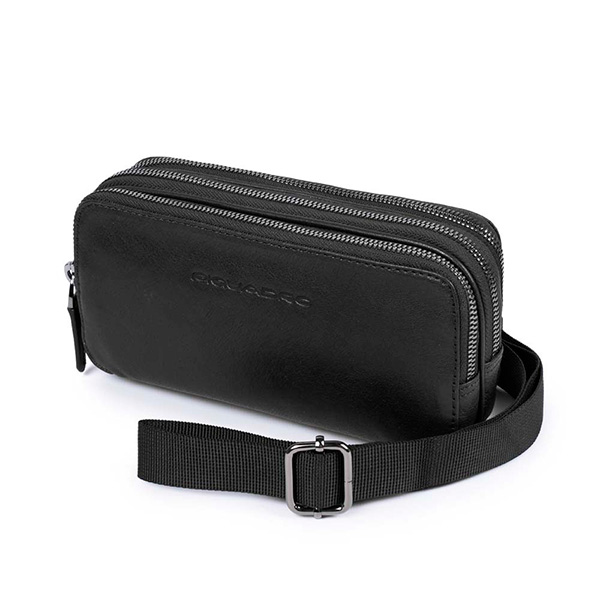 Клатч из коллекции Piquadro Black Square. Изготовлена из высококачественной структурной телячьей кожи с черным кантом. Имеет три отделения с кармашками для 12 банковских карт, съемный плечевой ремень и хлястик на запястье. Очень полезный аксессуар на каждый день
