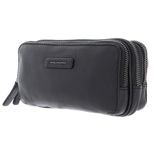 Мужской клатч на молнии с тремя отделениями от компании Piquadro, коллекция Modus Special. Натуральная кожа черного цвета.