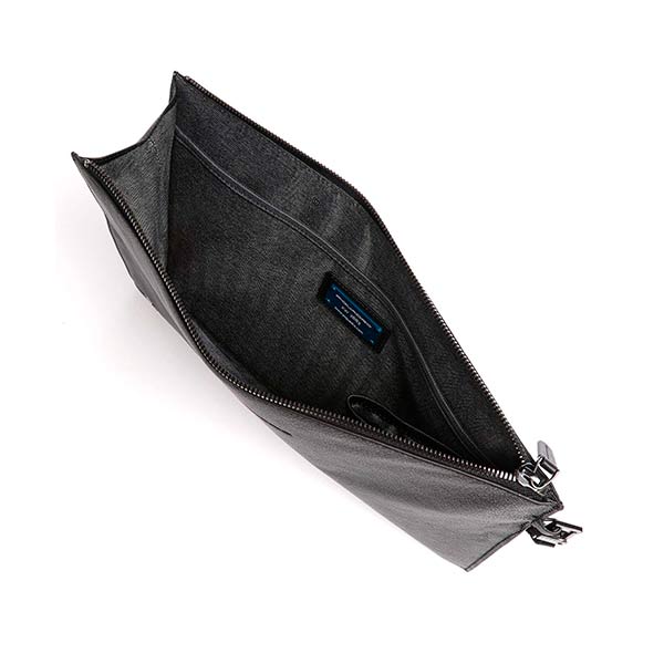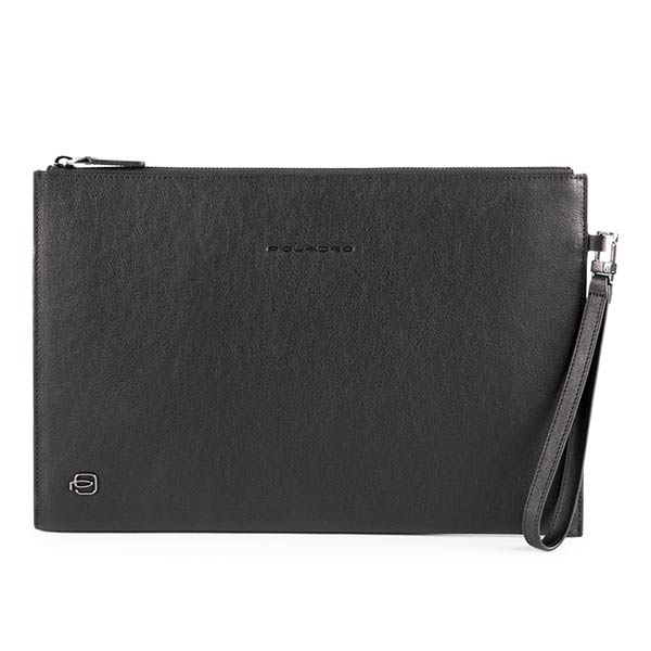 Большой кожаный клатч с карманом под IPADAIR-IPAD PRO 9.7/IPAD 11" из коллекции Piquadro Black Square. Клатч имеет одно отделение, кармашек под очки и ремешок на запястье.