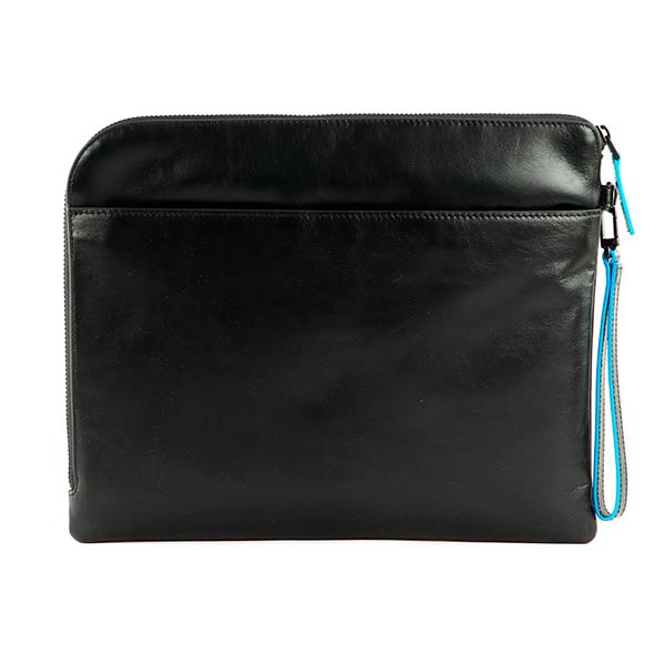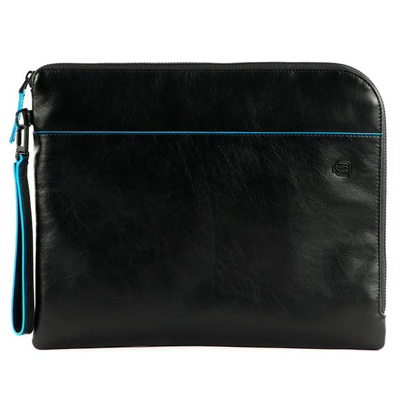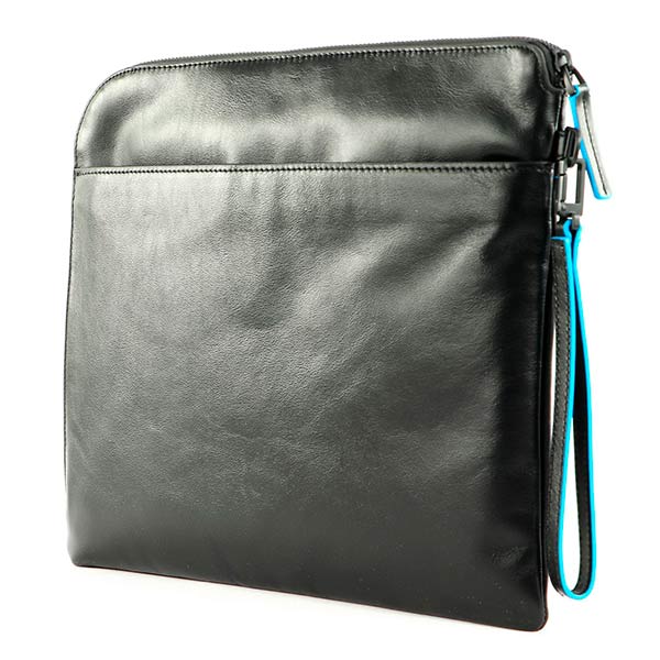 Клатч кожаный из коллекции Piquadro Blue Square. Изготовлен из мягкой телячьей кожи с восковой пропиткой и голубым кантом. Клатч имеет 1 отделения на молнии и внешний карман, в основном отделении располагаются отсек ipad, а так же можно положить телефон.
