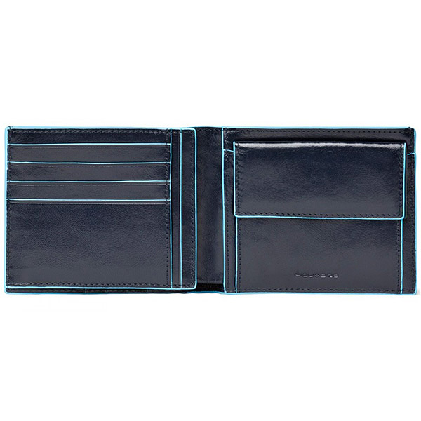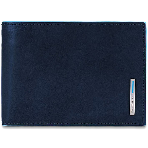 Мужской кошелек с отделениями для мелочи и личных документов от компании Piquadro, коллекция Blue Square. Натуральная телячья кожа синего цвета.