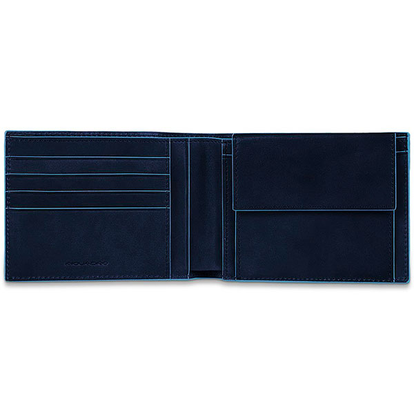 Мужской кошелек с отделениями для монет и кредитных карточек от компании Piquadro, коллекция Blue Square. Материал - натуральная телячья кожа синего цвета.