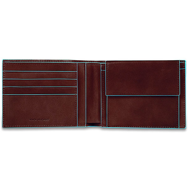 Мужской кошелек с отделениями для монет и кредитных карточек от компании Piquadro, коллекция Blue Square. Материал - натуральная телячья кожа коричневого цвета.
