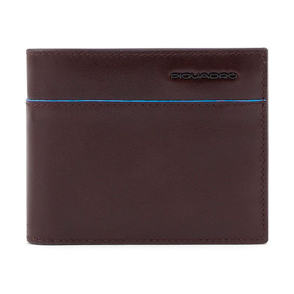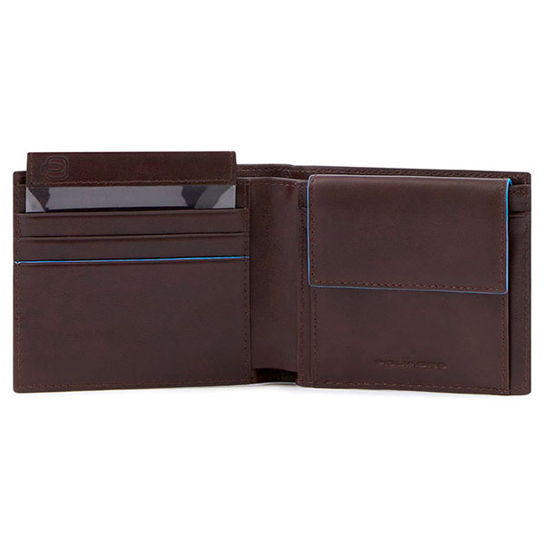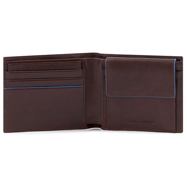 Мужской кошелек с отделениями для монет и кредитных карточек от компании Piquadro, коллекция Blue Square Revamp. Материал - натуральная телячья кожа коричневого цвета.