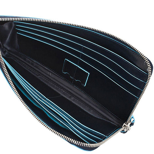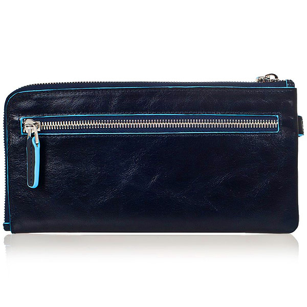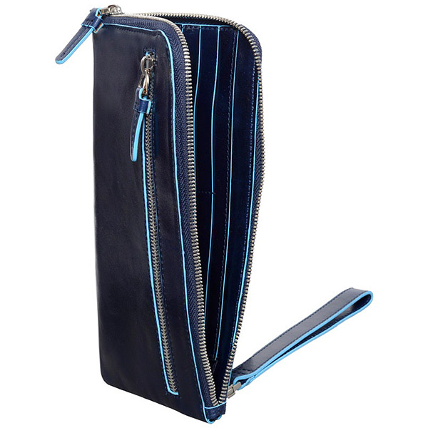 Мультипортмоне на молнии от компании Piquadro, коллекция Blue Square. Натуральная телячья кожа синего цвета.