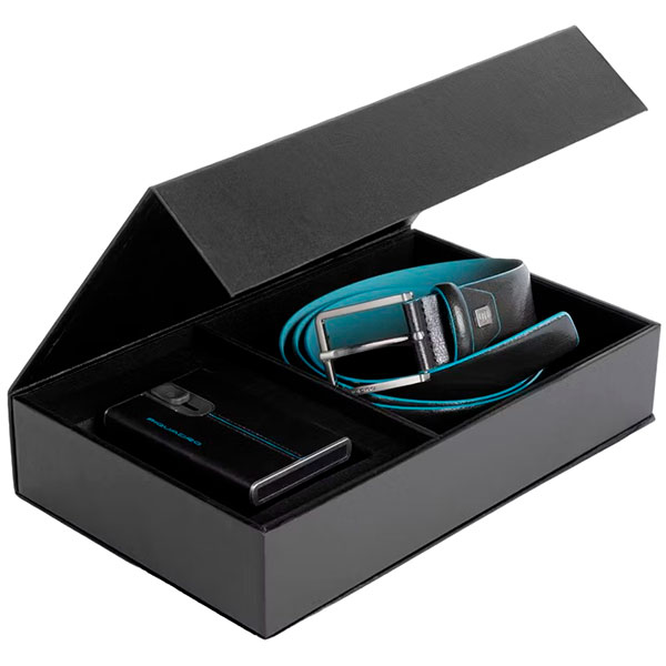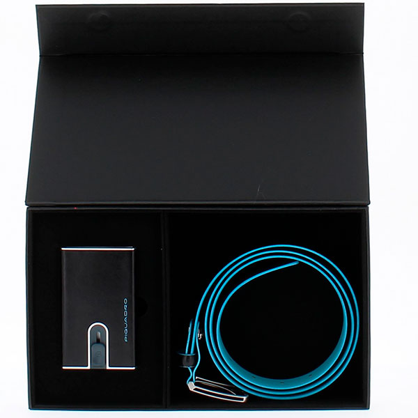 Описание для Мужской подарочный набор Piquadro Blue Square из ремня и чехла для кредитных карт черного цвета