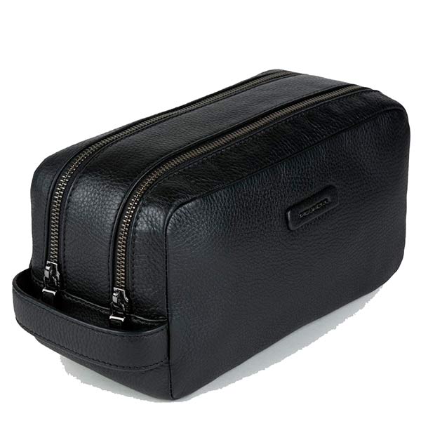 Кожаный несессер из коллекции Piquadro Modus Special. Изготовлен из превосходной зернистой телячьей кожи с черненой металлической фурнитурой. Имеет два отделения на молнии и удобную ручку для переноски. Полезный аксессуар для необходимых в путешествиях вещей.