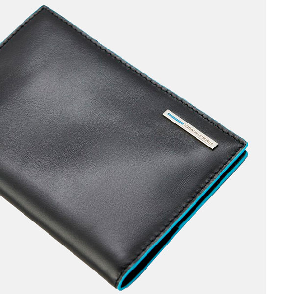 Стильная обложка для паспорта из гладкой телячьей кожи с голубой окантовкой из коллекции Piquadro Bl..