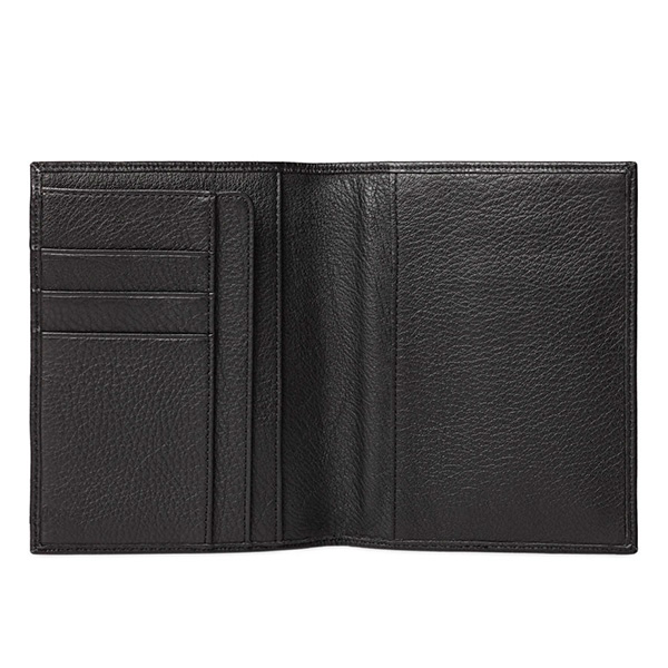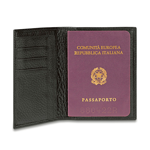 Черная обложка для паспорта из базовой коллекции MODUS. Имеет отделения для кредитных карт. Обложка сделана из прочной износостойкой телячьей текстурной кожи.