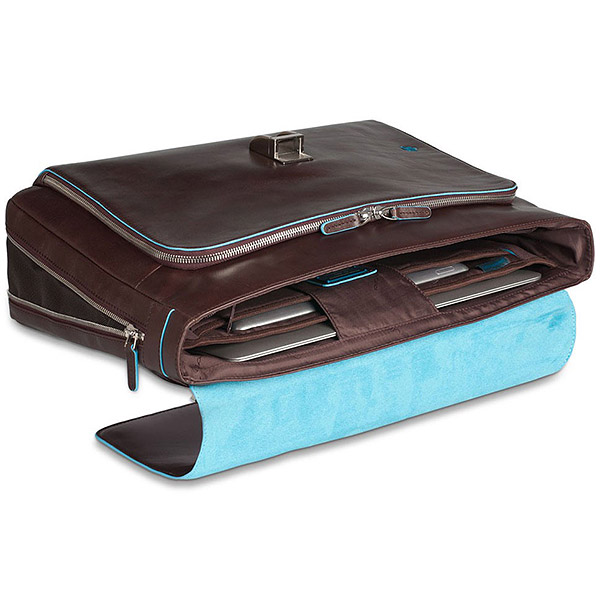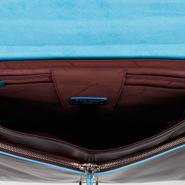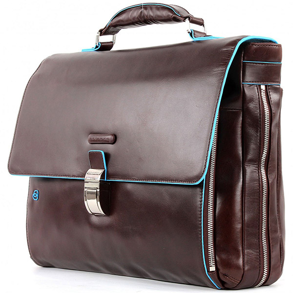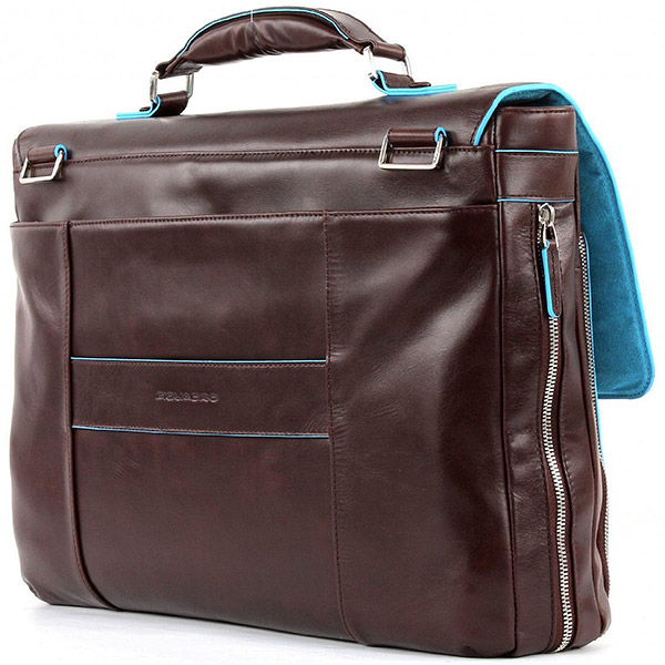 Кожаный портфель синего цвета с плечевым ремнем из коллекции Piquadro Blue Square. Пожалуй, самая по..