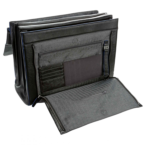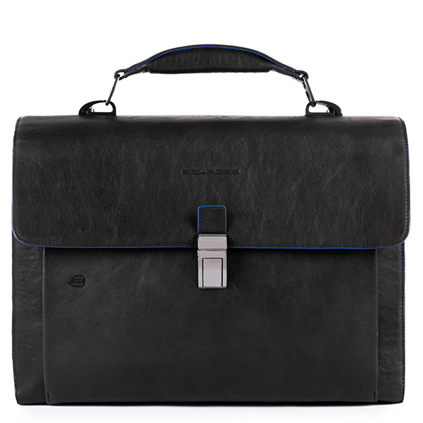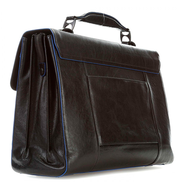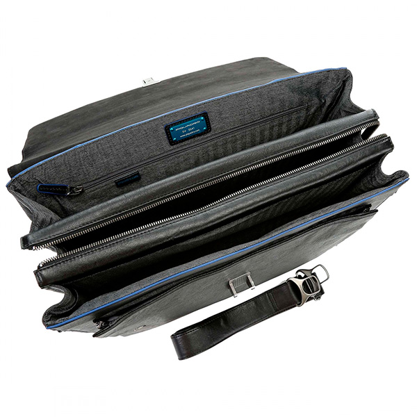 Солидный кожаный портфель с тремя отделениями из флагманской коллекции Piquadro Blue Square Special с фирменным темно-синим кантом. Портфель изготовлен из премиальной телячьей анилиновой кожи, сохраняющей естественную структуру и неповторимый цвет. Имеет три отделение, одно из которых на молнии и с защитными-мягкими стенками, предназначено для 15,6 дюймового ноутбука, два других прекрасно подойдут для документов формата A4. На передней части портфеля расположен карман на молнии с отсеками для телефона, планшета, визитных карт и письменных принадлежностей. В комплекте с портфелем идет съемный плечевой ремень. Не смотря на свою высокую функциональность портфель не выглядит очень большим и идеально подходит для использования на каждый день.
