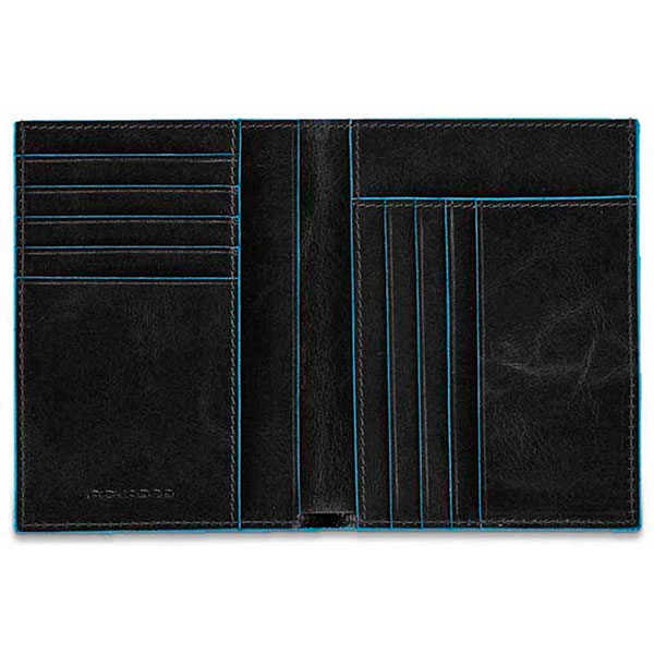 Вертикальное кожаное портмоне от компании Piquadro, коллекция Blue Square. Имеет 9 отделений для кредитных карт и отделение для банкнот.