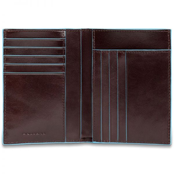 Вертикальное кожаное портмоне от компании Piquadro, коллекция Blue Square. Имеет 9 отделений для кредитных карт и отделение для банкнот.