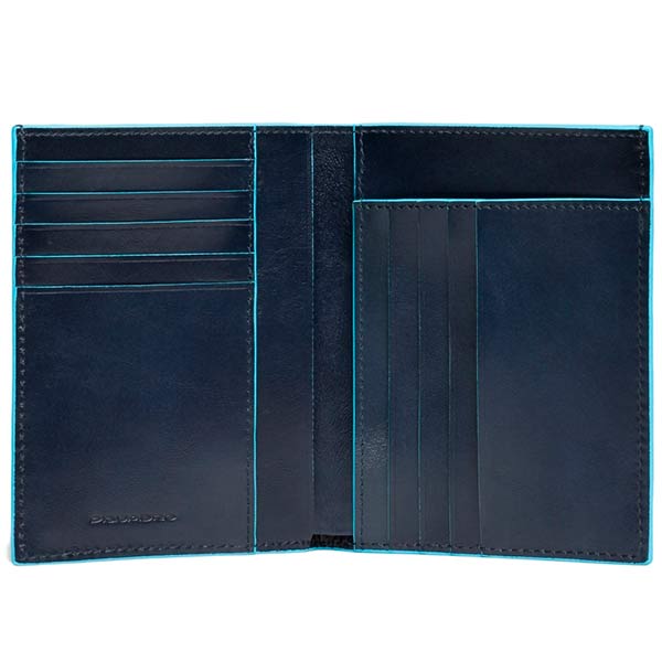 Вертикальное кожаное портмоне от компании Piquadro, коллекция Blue Square. Имеет 9 отделений для кредитных карт и отделение для банкнот.
