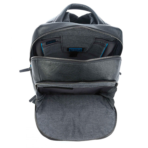 Кожаный рюкзак с двумя отделениями, внутренними и внешними карманами на молнии, отсеками для ноутбука из новой коллекции Black Square от компании Piquadro. Сделан из мелкозернистой телячьей кожи. Фурнитура черненая. Благодаря уникальной технологии обработки без использования химических веществ, каждое изделие имеет свой неповторимый оттенок. Новый цвет 2018 г.