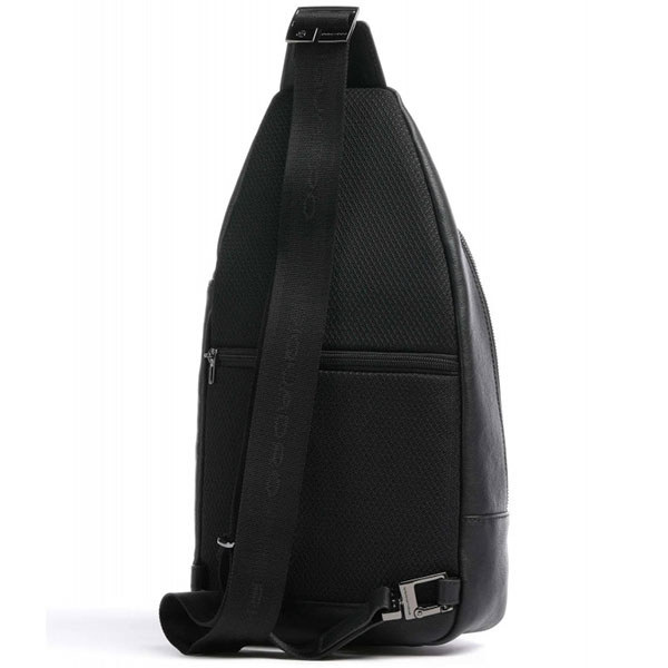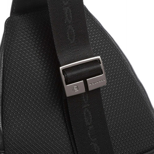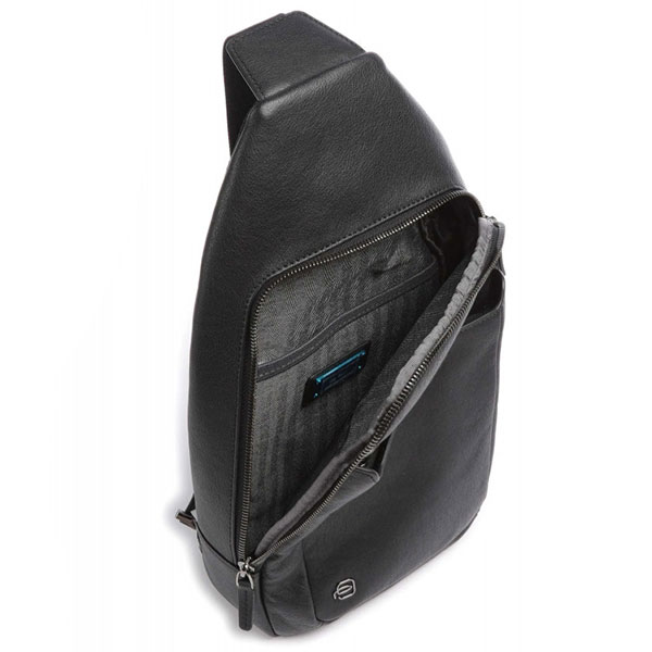 Рюкзак с одной лямкой из коллекции Piquadro Black Square. Изготовлен из структурной телячьей кожи с черным кантом и черненой фурнитурой. Рюкзак имеет отсек для планшета IPAD®AIR-IPAD PRO 9.7/IPAD 11 и кармашки для письменных принадлежностей и телефона, а также внешний карман на молнии.
