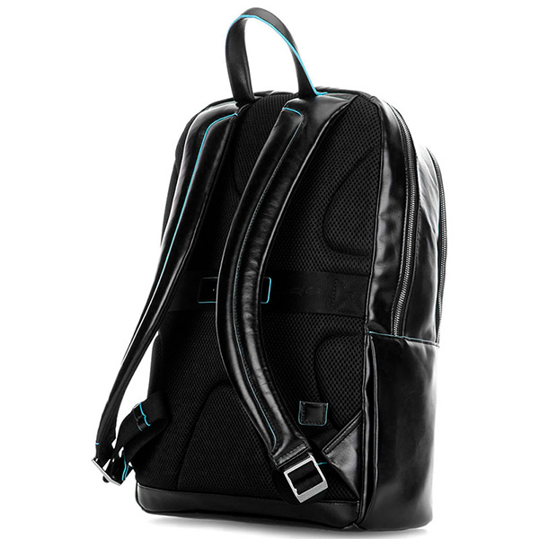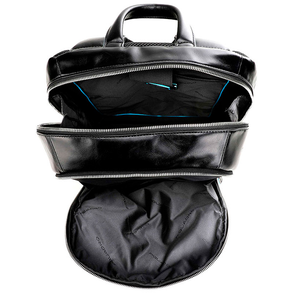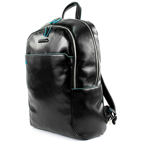 Новая версия наиболее популярной модели рюкзака CA3214B2, только в увеличенном варианте, из коллекции Piquadro Blue Square. Изготовлен рюкзак из гладкой телячьей кожи с восковой пропиткой и голубым кантом. В отличие от своего "младшего брата" данная модель рюкзака имеет высоту в 43 см, что дает возможность поместить, в специальное отделение, ноутбук размером до 15.6 дюймов и планшет. Также в рюкзаке расположено ещё два кармана на молнии, в одном из которых предусмотрены отсеки для телефона и письменных принадлежностей. На задней стенке рюкзака расположено крепление на дорожную сумку, а сбоку скрытый чехол для бутылки.
