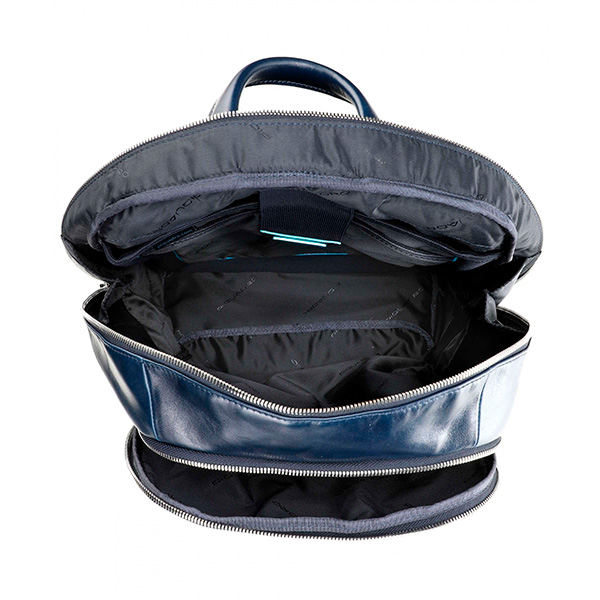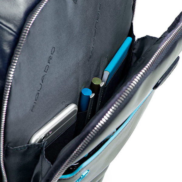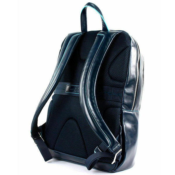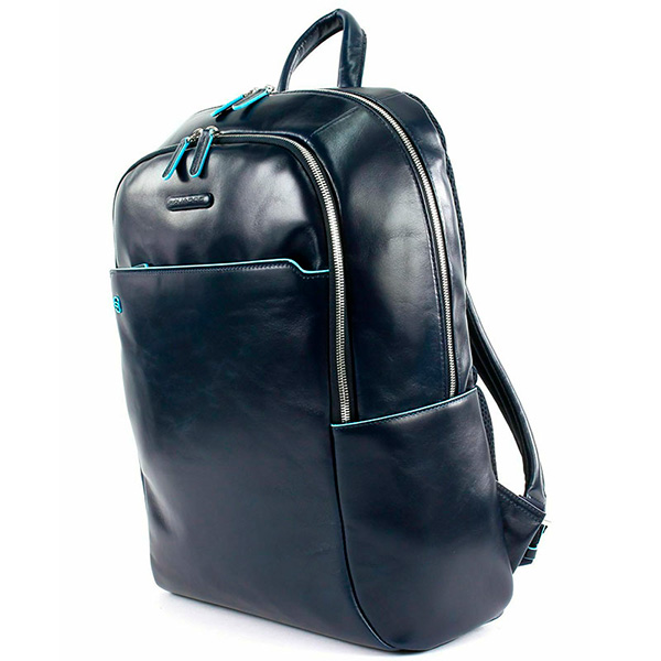 Новая версия наиболее популярной модели рюкзака CA3214B2, только в увеличенном варианте, из коллекции Piquadro Blue Square. Изготовлен рюкзак из гладкой телячьей кожи с восковой пропиткой и голубым кантом. В отличие от своего "младшего брата" данная модель рюкзака имеет высоту в 43 см, что дает возможность поместить, в специальное отделение, ноутбук размером до 15.6 дюймов и планшет. Также в рюкзаке расположено ещё два кармана на молнии, в одном из которых предусмотрены отсеки для телефона и письменных принадлежностей. На задней стенке рюкзака расположено крепление на дорожную сумку, а сбоку скрытый чехол для бутылки.