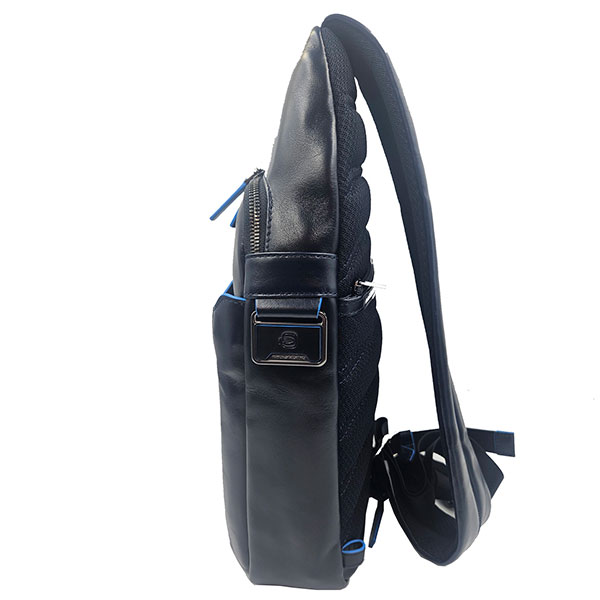 Стильный кожаный рюкзак с одной лямкой из флагманской коллекции Piquadro Blue Square. Изготовлен из высококачественной гладкой телячьей кожи с фирменной голубой окантовкой. Рюкзак имеет одно отделение с отсеком для планшета IPAD®AIR-IPAD PRO 9.7/IPAD 11" и кармашками для телефона и ручек. На передней и задней части также расположены карманы на молнии. Петли на задней части и карабин позволяют закрепить лямку на удобной для Вас стороне рюкзака. Удобная и практичная модель, отлично подойдет для ежедневного использования в качестве альтернативы сумкам через плечо.