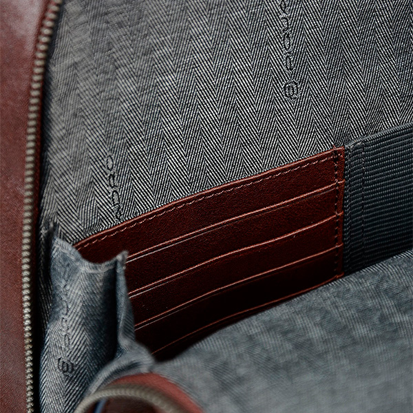 Кожаный рюкзак для документов и ноутбука из новой коллекции Piquadro Blue Square. Рюкзак изготовлен из телячьей текстурной матовой кожи натурального дубления. В рюкзаке есть три отделения на молнии, с отсеками для Ipad 10,5 дюймов и 15 дюймового ноутбука. Есть специальное место для ручек и отсек для телефона. На боковой части карман для зонта и бутылки. Хороший вариант вместительного кожаного рюкзака, прекрасно подойдет для работы и небольших командировок.