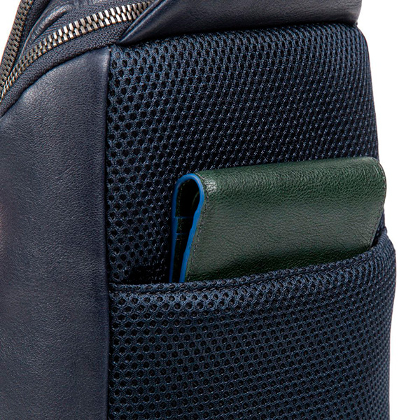 Стильный кожаный рюкзак с одной лямкой из флагманской коллекции Piquadro Blue Square. Изготовлен из ..