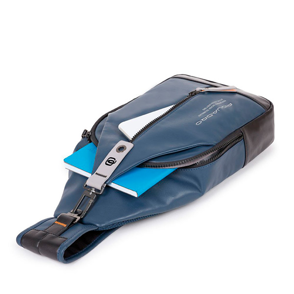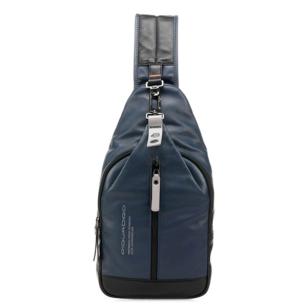 Стильный кожаный рюкзак с одной лямкой из флагманской коллекции Piquadro Blue Square. Изготовлен из ..