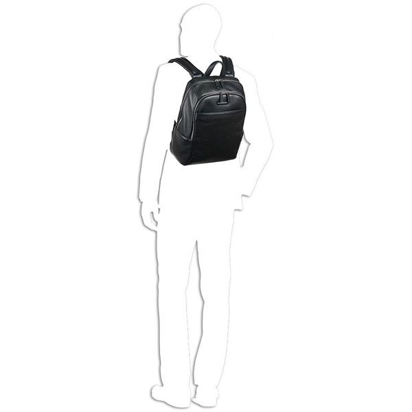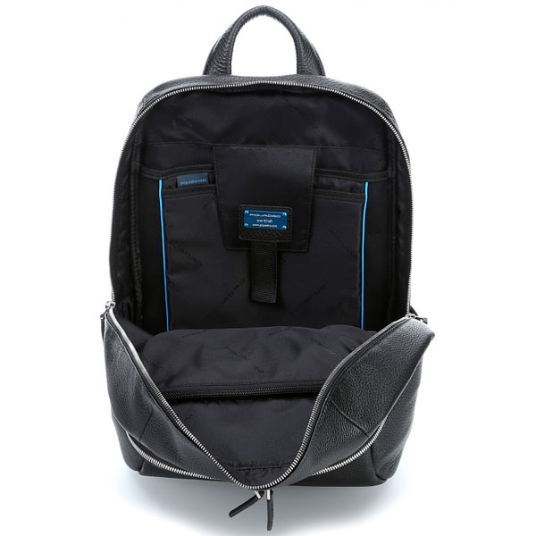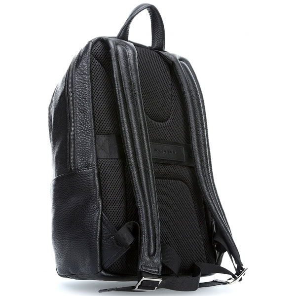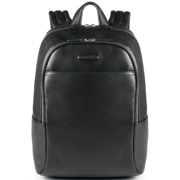 Рюкзак для ноутбука, с защитой от ударов, отделением для iPad Pro и iPad mini от компании Piquadro, коллекция Modus. Материал - натуральная телячья кожа черного цвета.