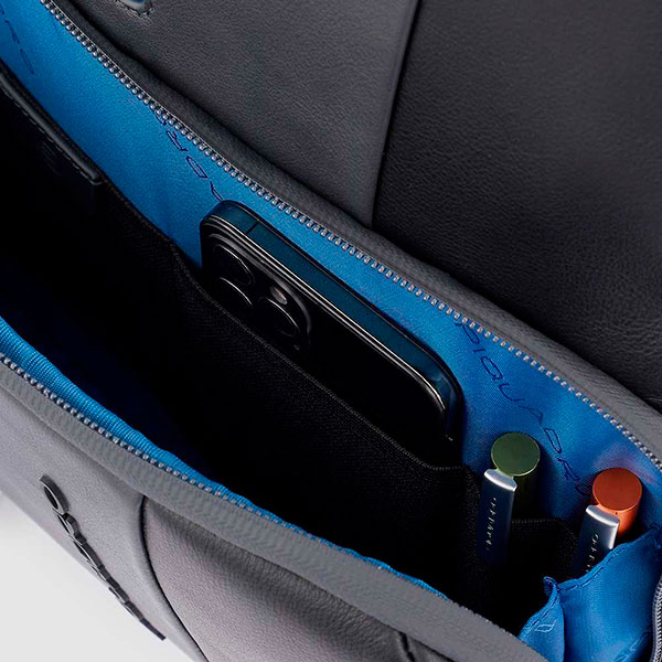 Стильный кожаный рюкзак с одной лямкой из флагманской коллекции Piquadro Blue Square. Изготовлен из ..