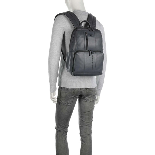 Наиболее популярная модель кожаного мужского бизнес-рюкзака из коллекции Piquadro Urban. Рюкзак изготовлен из мягкой структурной телячьей кожи, фурнитура черненая, матовая. Имеет одно основное отделение с отсеком для 14 дюймового ноутбука и планшета. На передней части рюкзака расположен карман на молнии с отсеками для телефона и письменных принадлежностей. По бокам расположены карманы на молнии для бутылки и зонта, на задней части рюкзака предусмотрена планка для ручки чемодана. Рюкзак имеет небольшой вес, всего 896 грамм и оптимальные габариты, благодаря чему он идеально подходит для ежедневного использования, как для работы, так и для повседневных нужд.