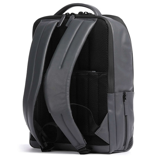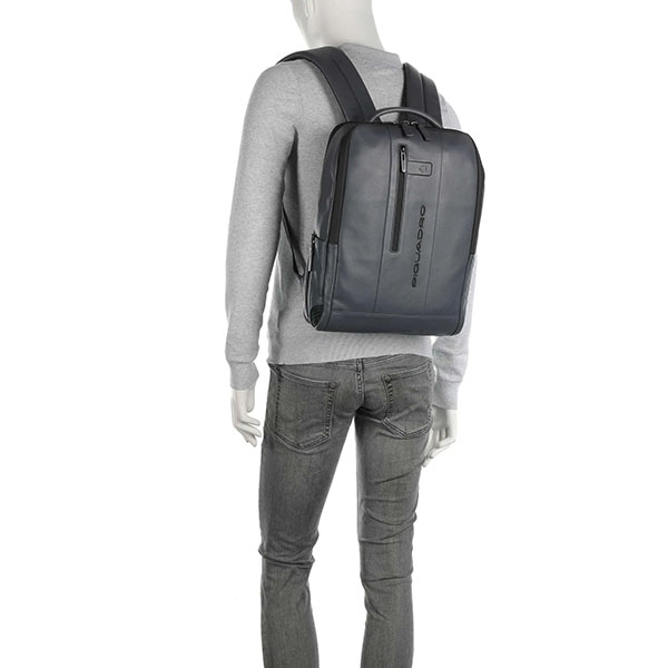 Кожаный мужской бизнес-рюкзак из коллекции Piquadro Urban. Рюкзак изготовлен из мягкой телячьей кожи с использованием черненой матовой фурнитуры. Имеет два отделения, одно из которых с отсеком для 15,6 дюймового ноутбука и планшета. На передней части рюкзака расположен карман на молнии, по бокам карманы для бутылки и зонта, на задней части предусмотрено крепление на дорожную сумку и карман на молнии, на одной из лямок кармашек для пластиковых карт. Рюкзак оборудован специальным шнуром, с помощью которого его можно пристегнуть и не беспокоиться, что его украдут.