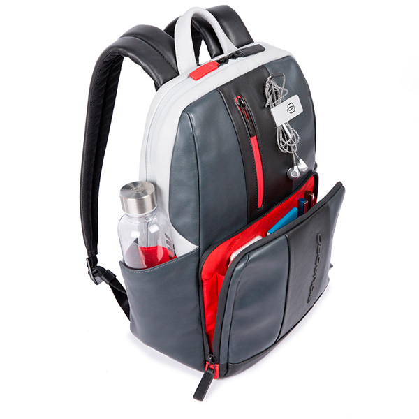 Наиболее популярная модель кожаного мужского бизнес-рюкзака из коллекции Piquadro Urban. Рюкзак изготовлен из мягкой структурной телячьей кожи, фурнитура черненая, матовая. Имеет одно основное отделение с отсеком для 14 дюймового ноутбука и планшета. На передней части рюкзака расположен карман на молнии с отсеками для телефона и письменных принадлежностей. По бокам расположены карманы на молнии для бутылки и зонта, на задней части рюкзака предусмотрена планка для ручки чемодана. Рюкзак имеет небольшой вес, всего 896 грамм и оптимальные габариты, благодаря чему он идеально подходит для ежедневного использования, как для работы, так и для повседневных нужд.