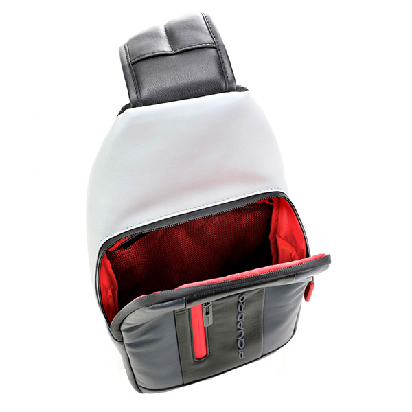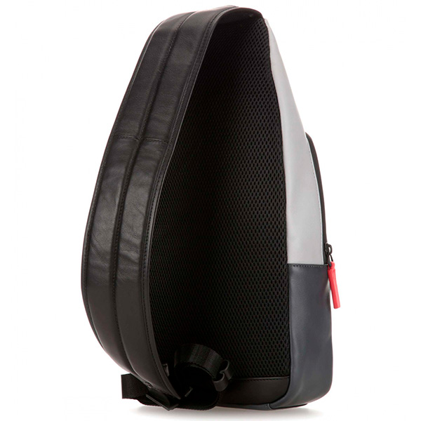 Стильный кожаный рюкзак с одной лямкой из новой коллекции Piquadro Urban. Изготовлен из гладкой телячьей кожи с использованием черненой фурнитуры. Рюкзак имеет одно отделение с кармашками для телефона и письменных принадлежностей. На передней части расположен карман на молнии и крепление для наушников. Рюкзаки с одной лямкой это популярный тренд последних лет, многие используют их в качестве альтернативы небольших сумок через плечо. Данная модель рюкзака выпускается в 4 расцветках, от классической черной до выделяющейся серой с яркими молниями.