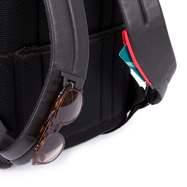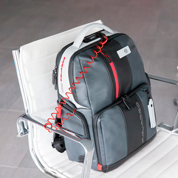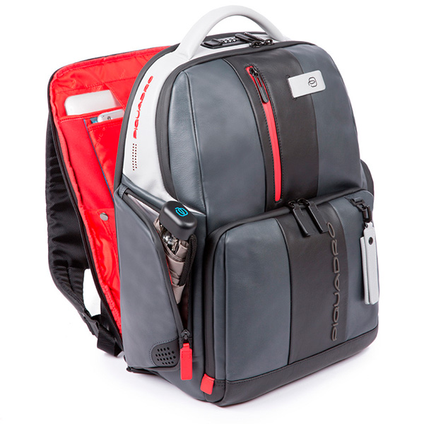 Кожаный бизнес-рюкзак из новой коллекции Piquadro Urban. Рюкзак изготовлен из мягкой телячьей кожи с использованием черненой металлической фурнитуры. Это флагманская модель рюкзака, здесь реализованы такие "фишки", как: кодовый замок на одном из отделений, датчик CONNEQU для отслеживания местоположения рюкзака, RFID защита, позволяющая избежать снятия денежных средств бесконтактным способом, "антиворовской" шнур, с помощью которого можно пристегнуть рюкзак и не беспокоится, что его своруют, USB выходы для зарядки Ваших гаджетов, а также крепеж на чемодан, крючок для очков и брелок с контактной информацией. Рюкзак имеет два отделения в одном из которых расположен отсек для 15,6 дюймового ноутбука и планшета, а боковые карманы предназначены для небольшой бутылки и зонтика. Идеальный вариант, как для работы на каждый день, так и для поездок.