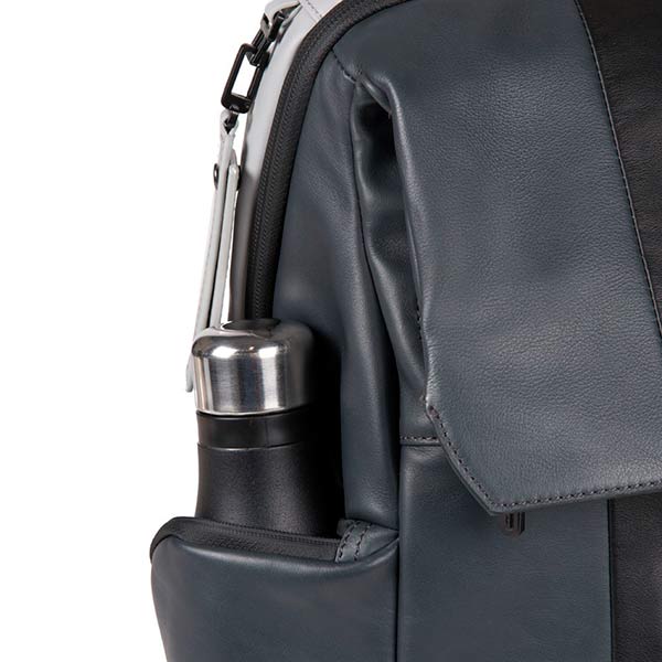 Мужской кожаный бизнес рюкзак из коллекции Piquadro Urban. Имеет два отделения, одно из которых с отсеком для 15,6 дюймового ноутбука. По бокам расположены карманы для бутылки и зонтика. На задней части карман на молнии и крепление на ручку дорожного чемодана.