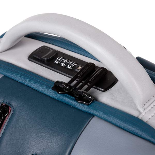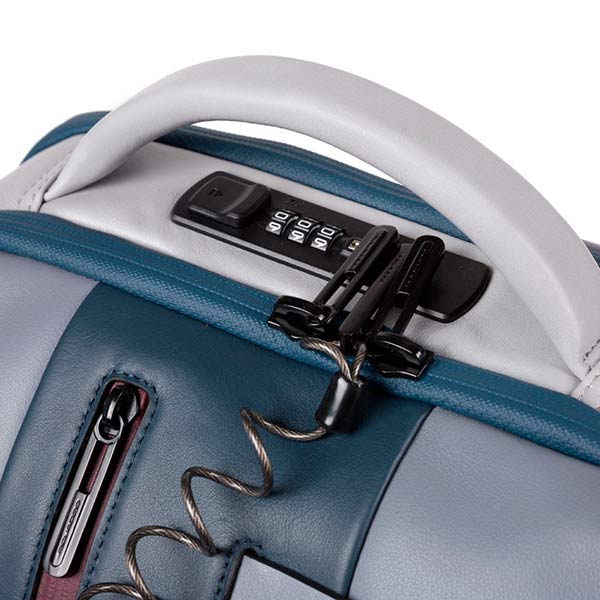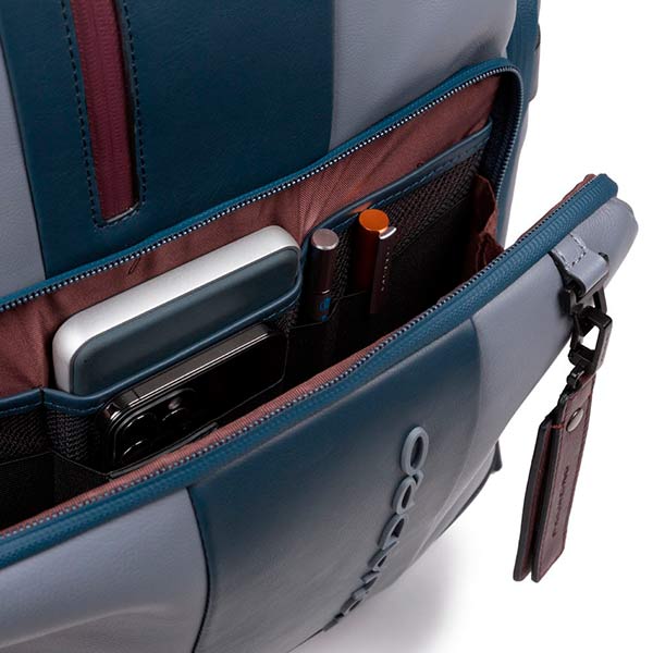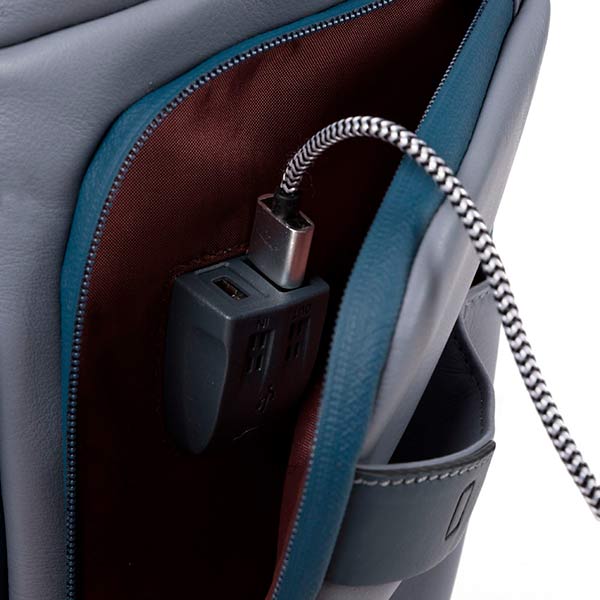 Кожаный бизнес-рюкзак из новой коллекции Piquadro Urban. Рюкзак изготовлен из мягкой телячьей кожи с использованием черненой металлической фурнитуры. Это флагманская модель рюкзака, здесь реализованы такие "фишки", как: кодовый замок на одном из отделений, датчик CONNEQU для отслеживания местоположения рюкзака, RFID защита, позволяющая избежать снятия денежных средств бесконтактным способом, "антиворовской" шнур, с помощью которого можно пристегнуть рюкзак и не беспокоится, что его своруют, USB выходы для зарядки Ваших гаджетов, а также крепеж на чемодан, крючок для очков и брелок с контактной информацией. Рюкзак имеет два отделения в одном из которых расположен отсек для 15,6 дюймового ноутбука и планшета, а боковые карманы предназначены для небольшой бутылки и зонтика. Идеальный вариант, как для работы на каждый день, так и для поездок.