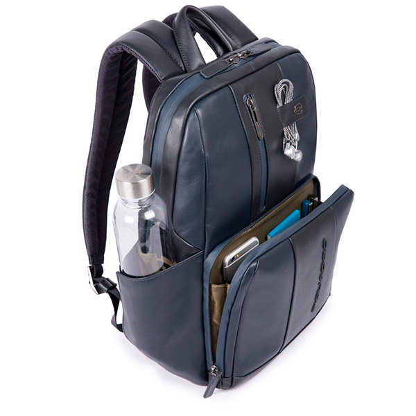 Наиболее популярная модель кожаного мужского бизнес-рюкзака из коллекции Piquadro Urban. Рюкзак изготовлен из мягкой структурной телячьей кожи, фурнитура черненая, матовая. Имеет одно основное отделение с отсеком для 14 дюймового ноутбука и планшета. На передней части рюкзака расположен карман на молнии с отсеками для телефона и письменных принадлежностей. По бокам расположены карманы на молнии для бутылки и зонта, на задней части рюкзака предусмотрена планка для ручки чемодана. Рюкзак имеет небольшой вес, всего 896 грамм и оптимальные габариты, благодаря чему он идеально подходит для ежедневного использования, как для работы, так и для повседневных нужд.