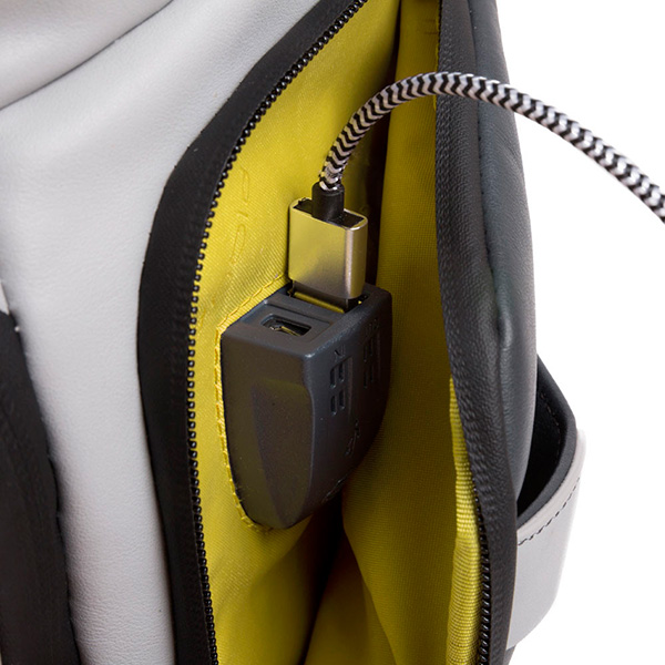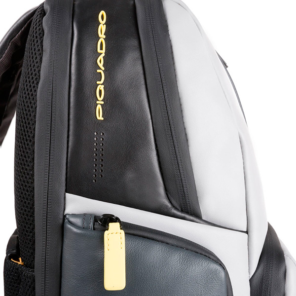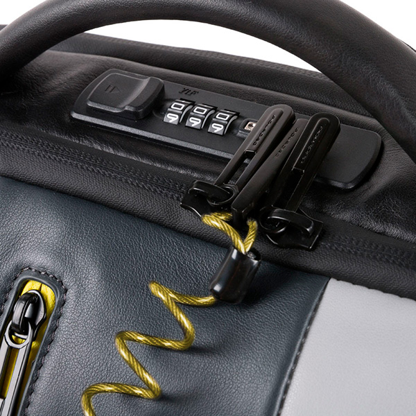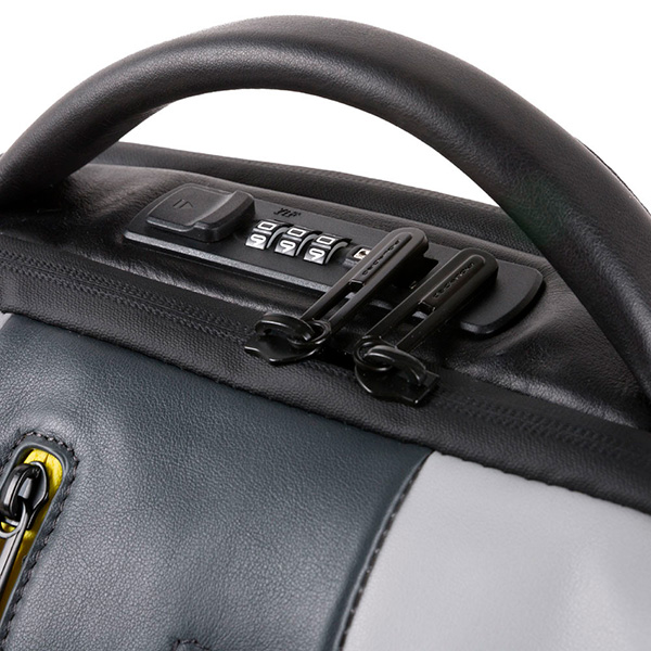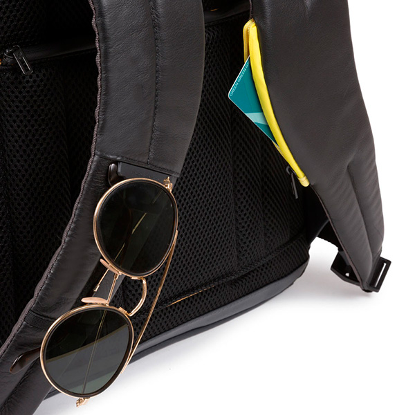 Кожаный бизнес-рюкзак из новой коллекции Piquadro Urban. Рюкзак изготовлен из мягкой телячьей кожи с использованием черненой металлической фурнитуры. Это флагманская модель рюкзака, здесь реализованы такие "фишки", как: кодовый замок на одном из отделений, датчик CONNEQU для отслеживания местоположения рюкзака, RFID защита, позволяющая избежать снятия денежных средств бесконтактным способом, "антиворовской" шнур, с помощью которого можно пристегнуть рюкзак и не беспокоится, что его своруют, USB выходы для зарядки Ваших гаджетов, а также крепеж на чемодан, крючок для очков и брелок с контактной информацией. Рюкзак имеет два отделения в одном из которых расположен отсек для 15,6 дюймового ноутбука и планшета, а боковые карманы предназначены для небольшой бутылки и зонтика. Идеальный вариант, как для работы на каждый день, так и для поездок.