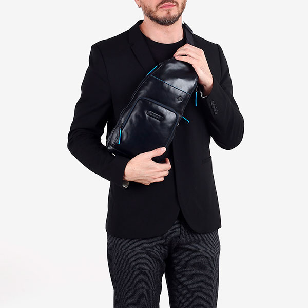 Стильный кожаный рюкзак с одной лямкой из флагманской коллекции Piquadro Blue Square. Изготовлен из ..