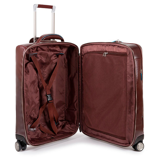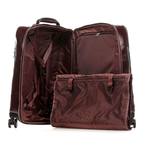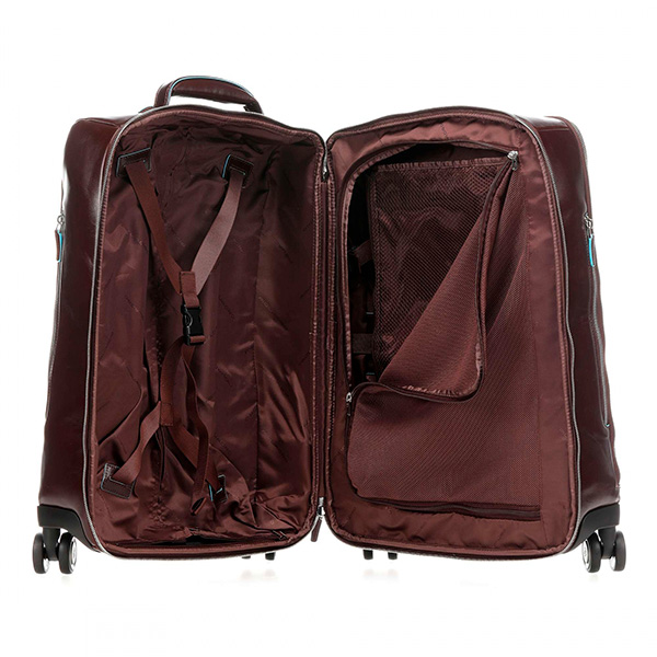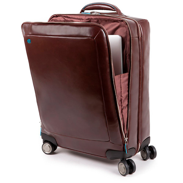 Стильный кожаный чемодан на 4 колесиках, с выдвижной ручкой из коллекции Piquadro Blue Square. Имеет два крупных отделения, одно из которых с отсеком для 15,6 дюймового ноутбука и планшета, второе с натяжными ремнями и портпледом для перевозки костюма. Отличный вариант для бизнес-командировок и путешествий. Объем: 45,5 л. Вес: 3,3 кг. Компактные размеры, позволяют взять чемодан в качестве ручной клади в салон самолета.