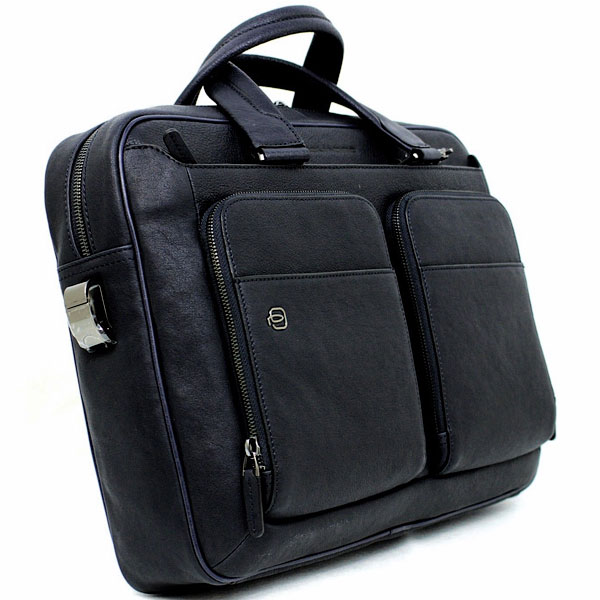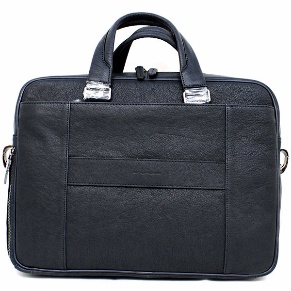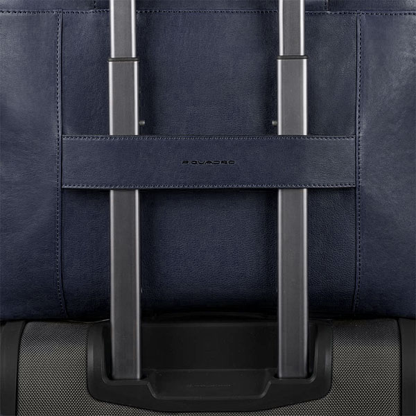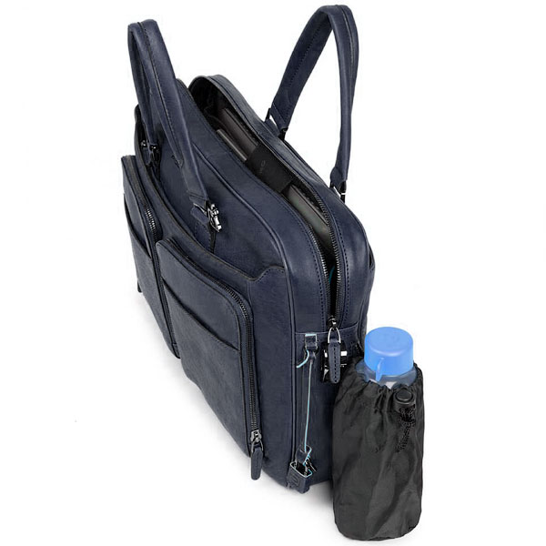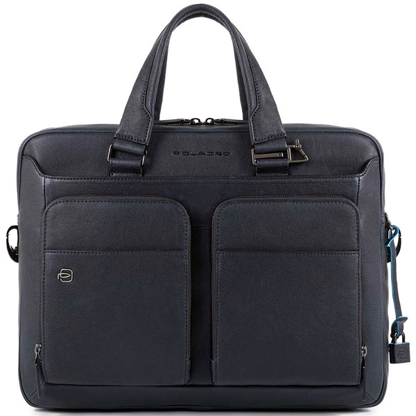 Тонкая кожаная сумка с двумя ручками от компании Piquadro, коллекция Black Square. Натуральная телячья кожа синего цвета.
