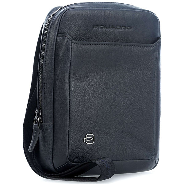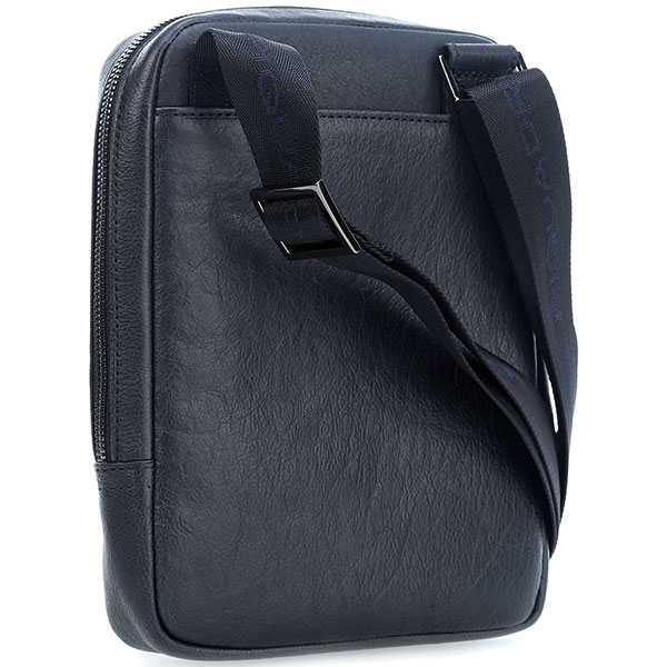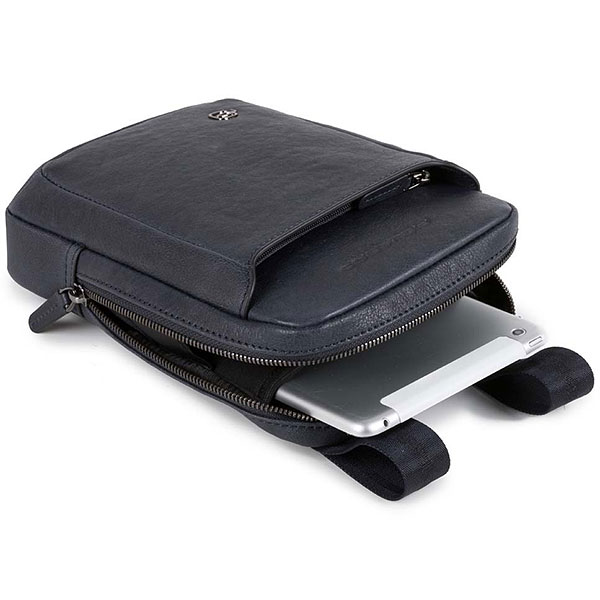 Кожаная сумка для iPad mini от компании Piquadro, коллекция Black Square. Натуральная телячья кожа синего цвета.