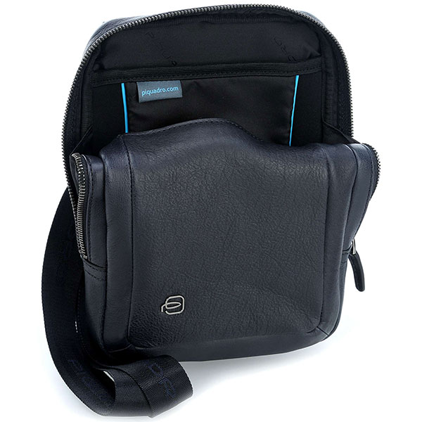 Кожаная сумка синего цвета с плечевым ремнем из коллекции Piquadro Blue Square. Имеет одно отделение..