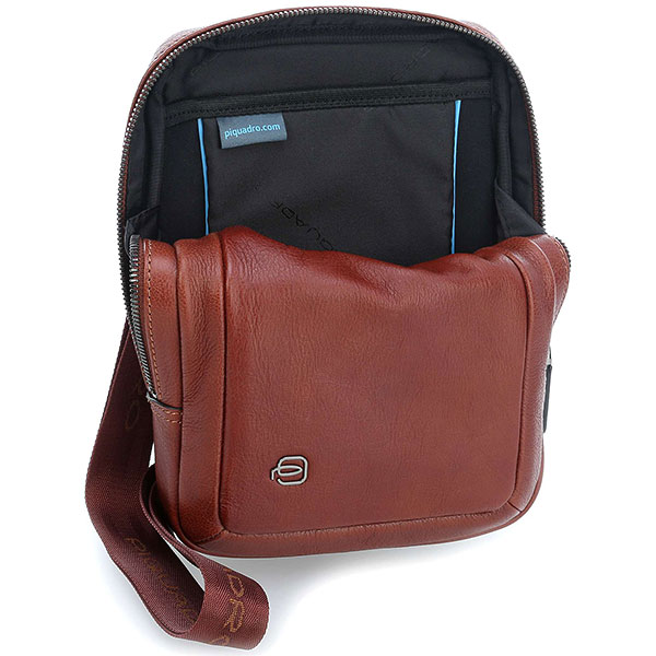 Кожаная сумка синего цвета с плечевым ремнем из коллекции Piquadro Blue Square. Имеет одно отделение..